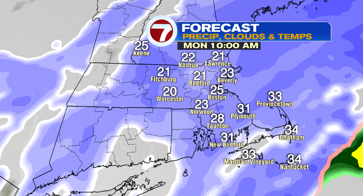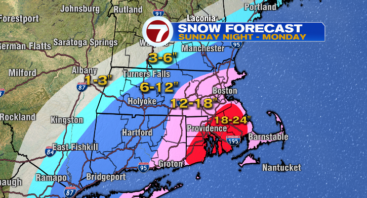 Snowfall totals! It is a coastal storm, so the best quantities might be throughout southeastern Massachusetts the place we might decide up as much as 2 toes of snow. Proper alongside the coast in Plymouth County, barely much less for the reason that wind will impact the snowflakes.