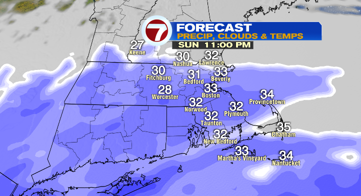 First flakes will fall in between 9 p.m. and midnight Sunday evening.