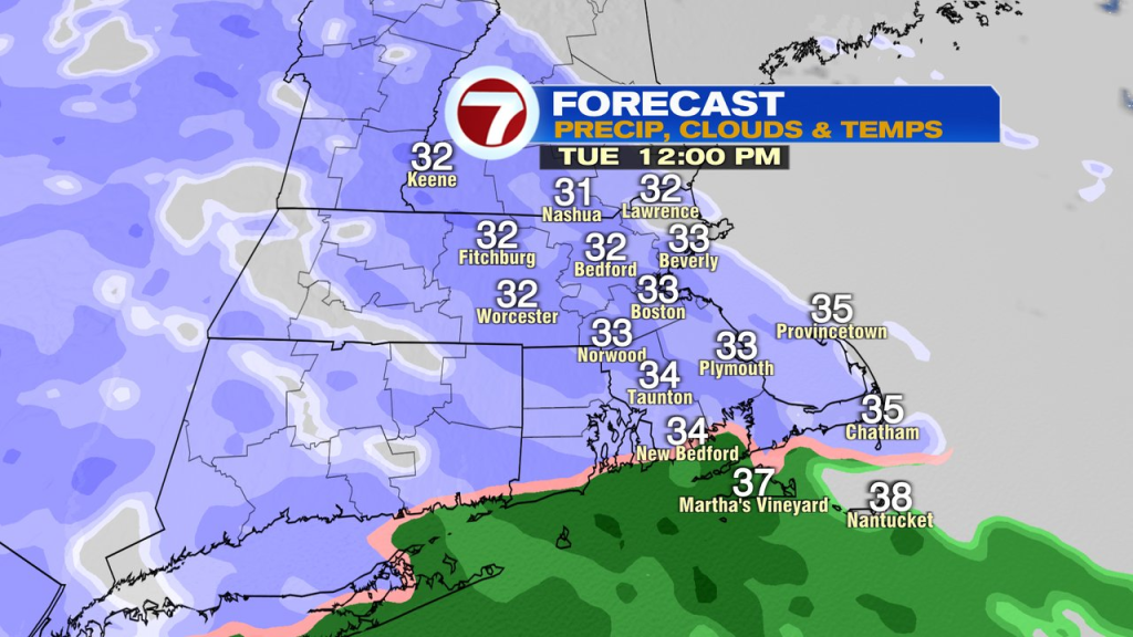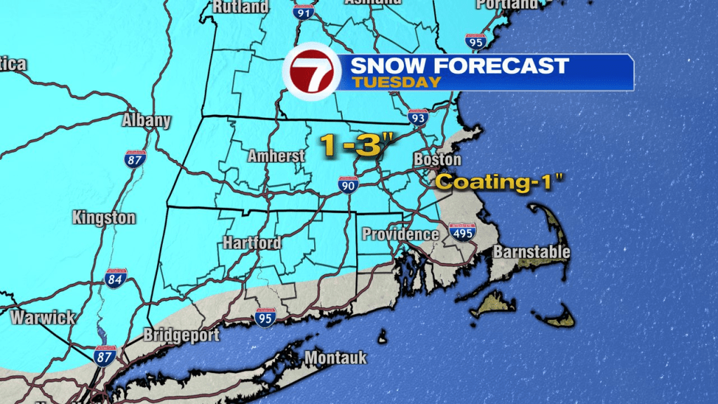 Dreaming of a white Christmas? For a lot of, snow will are available simply within the Saint Nick of time as flakes begin to fly mid to late morning tomorrow. By way of the day, snow is mostly mild and with temps operating within the decrease 30s, predominant roads which are handled ought to truthful okay. Untreated surfaces/secondary roads could also be slick at occasions, however total, it’s a minor storm. Durations of sunshine snow linger into the night earlier than petering out for a lot of. With winds kicking in out of the south, temps do heat nicely above freezing close to the south coast, restricted accumulation and sure permitting for some rain drops to combine in. All stated and accomplished, 1-3″ of snow falls for a lot of close to and out of doors I-95, with decrease totals close to coast/southeast Mass.