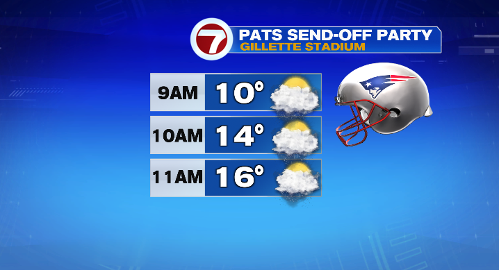 By the way in which, when you’re heading to Gillette for the Pats send-off rally, bundle up!!! We’ll see flurries and maybe a snow bathe or two between the time the gates open at 9 and the time the rally wraps up round 11:30. Temperatures will keep beneath 20 levels, and it’ll be windy!