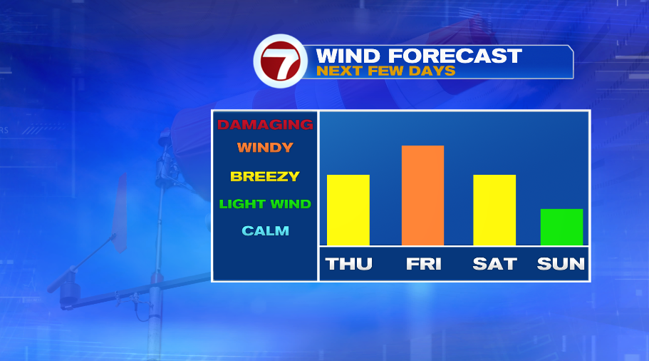 The wind will change into the story for the remainder of the vacation weekend. Whereas the breeze picks up this afternoon, will probably be downright windy on Friday. Saturday will maintain a breeze, earlier than it lastly settles down on Sunday. Most of Sunday the wind received’t be that unhealthy, nonetheless by the late afternoon and night on Sunday that breeze will begin to choose again up.