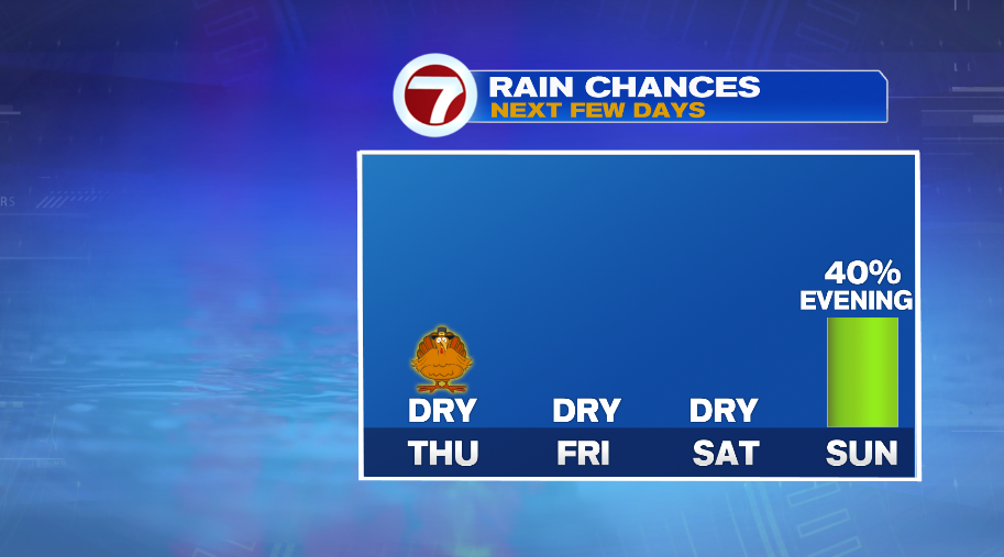 Good morning and glad Thanksgiving! After a light day yesterday with highs within the decrease 60s, in the present day goes to really feel far more like a typical Thanksgiving. Our common excessive is 48° and we’ll be about there, seemingly falling simply a few levels shy. We’ll have quantity of sunshine in the present day although, so journey plans are nice in the present day! The breeze isn’t unhealthy this morning however it can choose up this afternoon, gusting to 30 mph in spots, and driving wind chills all the way down to the 30s and low 40s this afternoon.