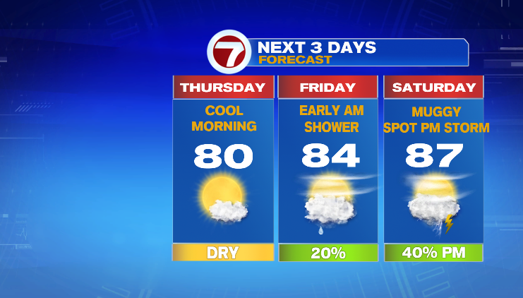 We have now one other nice day on faucet for Thursday with principally sunny skies and nice temps/humidity ranges: