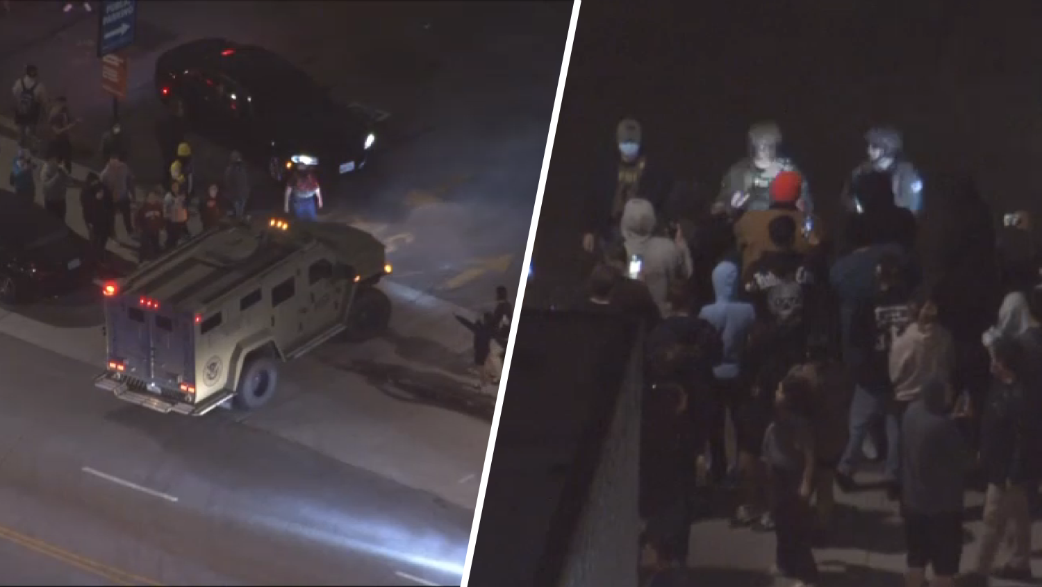 Federal brokers confronted by protesters in Chinatown – NBC Los Angeles