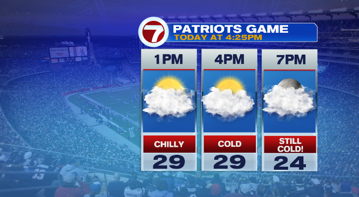 Should you’re headed to Gillette at this time, ensure to bundle up! Temperatures can be within the 20s once more in Foxboro.