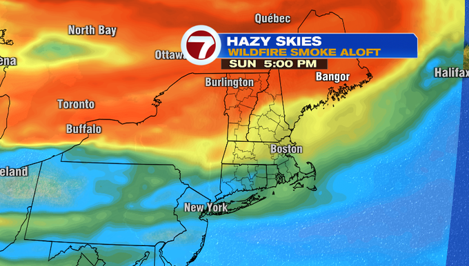 Will probably be cool once more in a single day. Open the home windows and let the refreshing air in! Tomorrow will likely be hotter within the mid 80s inland. Temperatures will likely be coolest on Cape Ann and Cape Cod tomorrow within the 70s. Some wildfire smoke aloft will make its method again into New England and create hazy skies. Air high quality is forecast to be reasonable for us tomorrow.