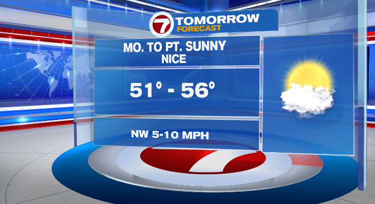 Tuesday we’ve bought simply an opportunity for some remoted mild rain showers. In any other case, it’ll be breezy and largely cloudy. Highs will attain the low 50s with morning lows within the higher 30s and low 40s.