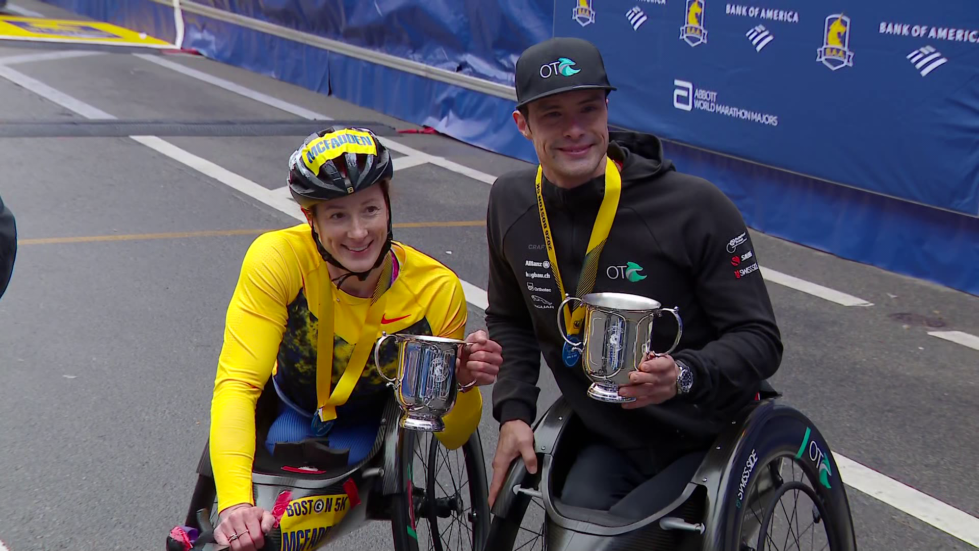 Eight-time Boston Marathon wheelchair champion — and now five-time Boston 5K winner — Marcel Hug took the highest spot in his division with a time of 10:25. American Daniel Romanchuk completed second.