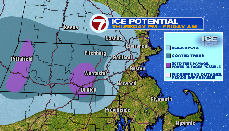 Sadly because the night progresses, we’ll see a mix of sleet, freezing rain and rain proceed and that may result in icy circumstances on the roads in a single day Thursday evening and into Friday morning. There truly might be sufficient of an icy buildup of ice on a few of the bushes and powerlines for remoted tree limb injury together with energy disruption within the Worcester Hills (however that is no method like the key ice storm of 2008):