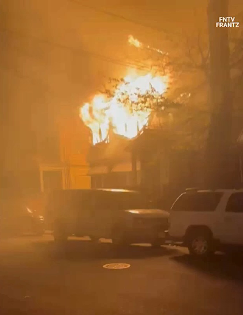 Intense flames might be seen capturing via the roof of the house, with the fireplace so scorching that it melted the siding of a neighboring dwelling.