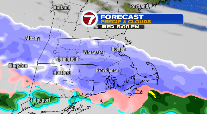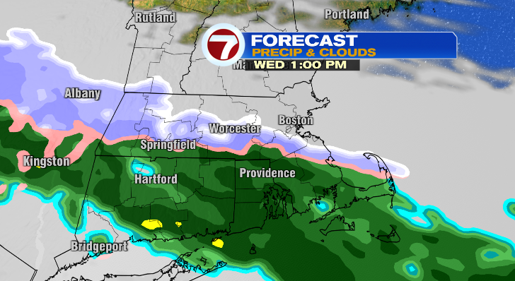 First, let’s start with Wednesday. There’s an opportunity for some remoted rain or combine within the morning however the widespread precipitation doesn’t begin till the afternoon. At first it begins round central and southern Massachusetts and takes extra time to maneuver north and east.
