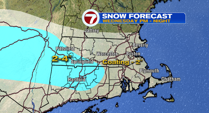 Most of us will get up to a coating to 2 inches of snow Thursday morning with extra throughout southwestern Massachusetts.