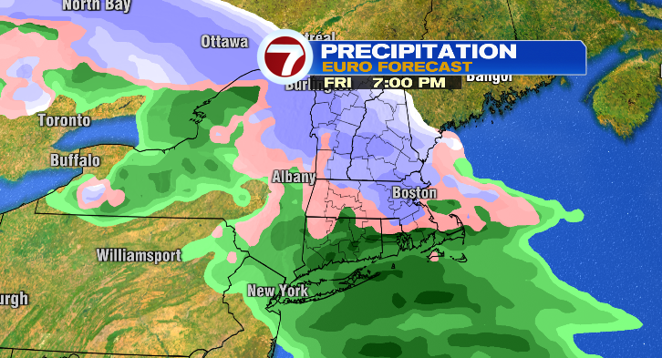For the night commute there can be rain and a mixture southeast, with the extra widespread snow caught up into central and western Massachusetts. The snow turns into far more widespread farther north and east into the night.
