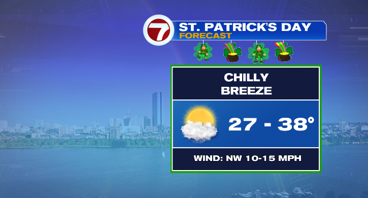 Tuesday is St. Patrick’s Day! It’ll be chilly. Lows within the higher 20s with highs into the higher 30s. It’ll be partly sunny however breezy.