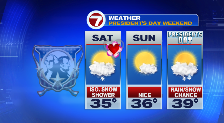 Saturday is Valentine’s Day and it seems principally quiet! There’s a low-end likelihood for an remoted snow bathe with a begin within the teenagers and highs within the mid 30s. Sunday will begin within the teenagers once more however high off within the mid to higher 30s with principally sunny skies.