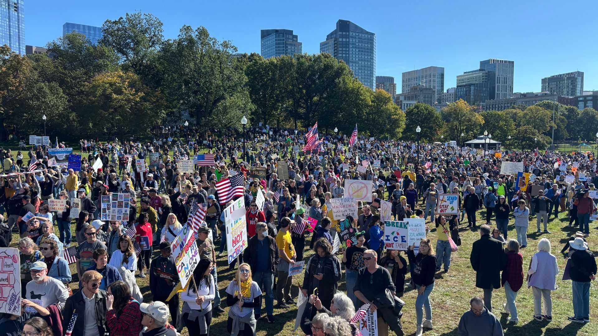 Hundreds of “No Kings” rallies had been held throughout the nation on Saturday, together with in Boston, the place protesters expressed opposition to what they are saying are President Trump’s “authoritarian energy grabs,” based on organizers.In an announcement posted to the NoKings.org web site, “On October 18, thousands and thousands of us are rising once more to indicate the world: America has no kings, and the ability belongs to the folks.”The nationwide day of defiance drew about 100,000 folks in Boston, based on occasion organizers, with a whole bunch of different Massachusetts cities and cities additionally becoming a member of in.Boston police say no arrests had been made in the course of the demonstration, which ended round 3 p.m.Video beneath: Sights and sounds from the Boston rallySpeakers on the Boston Widespread rally embody Mayor Michelle Wu, Government Director of ACLU of Massachusetts Carol Rose, together with performances by The Sheila Divine and Abbie Barrett.The Boston rally kicks off round midday. For a listing of different cities and cities holding rallies within the Commonwealth, click on right here. That is the third mass mobilization since Trump’s return to the White Home, and it’s anticipated to be the most important. It comes in opposition to the backdrop of a authorities shutdown that not solely has closed federal packages and companies, however is testing the core steadiness of energy as an aggressive govt confronts Congress and the courts in ways in which organizers warn is a slide towards American authoritarianism. “They are saying they’re referring to me as a king. I’m not a king,” Trump mentioned in a Fox Information interview airing early Friday, earlier than he departed for a $1 million-per-plate MAGA Inc. tremendous PAC fundraiser at his Mar-a-Lago dwelling in Florida.Whereas the sooner protests this 12 months — in opposition to Elon Musk’s cuts in spring, then to counter Trump’s navy parade in June — drew crowds, organizers say this one is constructing a extra unified opposition occasion motion. High Democrats similar to Senate Chief Chuck Schumer and Unbiased Sen. Bernie Sanders are becoming a member of in what organizers view as an antidote to Trump’s actions, from the administration’s clampdown on free speech to its military-style immigration raids.“There isn’t any higher risk to an authoritarian regime than patriotic people-power,” mentioned Ezra Levin, a co-founder of Indivisible, among the many key organizers.As Republicans and the White Home dismiss the protests as a rally of radicals, Levin mentioned their very own sign-up numbers are rising. Greater than 2,600 rallies are deliberate in cities giant and small, organized by a whole bunch of coalition companions. They mentioned rallies are being deliberate inside a one-hour drive for many People.Republicans have sought to painting individuals in Saturday’s rallies as far outdoors the mainstream of American politics, and a most important purpose for the extended authorities shutdown, now in its 18th day.From the White Home to Capitol Hill, GOP leaders disparaged the rallygoers as “communists” and “Marxists.”They are saying Democratic leaders, together with Schumer, are beholden to the far-left flank and keen to maintain the federal government shut right down to appease these liberal forces.“I encourage you to observe — we name it the Hate America rally — that can occur Saturday,” mentioned Home Speaker Mike Johnson, R-La.“Let’s see who exhibits up for that,” Johnson mentioned itemizing off teams together with “antifa sorts,” individuals who “hate capitalism” and “Marxists in full show.”Democrats have refused to vote on laws that will reopen authorities as they demand funding for well being care. Republicans say they’re keen to debate the difficulty later, solely after authorities reopens.However for a lot of Democrats, the federal government closure can be a approach to stand as much as Trump, and attempt to push the presidency again to its place within the U.S. system as a co-equal department of the federal government.In a Fb publish, Sanders of Vermont, himself a former presidential contender, mentioned, “It’s a love America rally.”“It’s a rally of thousands and thousands of individuals throughout this nation who imagine in our Structure, who imagine in American freedom and,” he mentioned, pointing on the GOP management, “usually are not going to allow you to and Donald Trump flip this nation into an authoritarian society.”The state of affairs is a possible turnaround from simply six months in the past, when Democrats and their allies had been divided and despondent, uncertain about how greatest to answer Trump’s return to the White Home. Schumer particularly was berated by his occasion for permitting an earlier authorities funding invoice to sail via the Senate with out utilizing it to problem Trump.In April, the nationwide march in opposition to Trump and Elon Musk had 1,300 registered places. In June, for the primary “No Kings” day, there have been 2,100 registered places. The march Saturday may have greater than 2,600 registered places, Levin mentioned.“What we’re seeing from the Democrats is a few backbone,” Levin mentioned. “The worst factor the Democrats may do proper now could be give up.”Home Democratic Chief Hakeem Jeffries mentioned he wasn’t certain if he would be a part of the rallygoers Saturday, however he took challenge with the Republicans’ characterization of the occasions.“What’s hateful is what occurred on January sixth,” he mentioned, referring to the 2021 Capitol assault, as Trump’s supporters stormed the constructing to protest Joe Biden’s election victory. “What you’ll see this weekend is what patriotism seems to be like, folks displaying as much as categorical opposition to the extremism that Donald Trump has been unleashing on the American 
