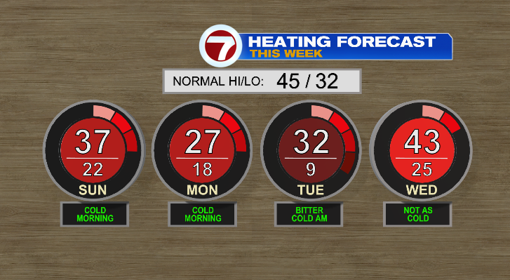 Tuesday morning would be the coldest this week. We’ll be all the way down to the only digits however highs rebound properly into the low 30s. It’ll be brighter within the morning however clouds will enhance because the day goes on and we now have one other likelihood for some spotty snow showers within the night.