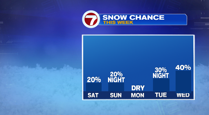We’ll proceed that rain and snow likelihood into Thursday with lows within the 30s and highs within the low 40s.