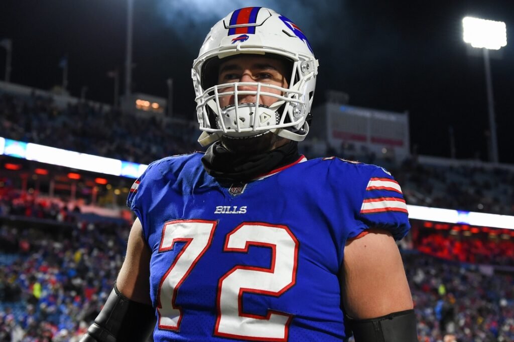 Jan 9, 2022; Orchard Park, New York, USA; Buffalo Payments offensive sort out Tommy Doyle (72) following the sport towards the New York Jets at Highmark Stadium. Obligatory Credit score: Wealthy Barnes-Imagn Photos Buffalo Payments offensive lineman Tommy Doyle introduced his retirement from the NFL attributable to medical causes.