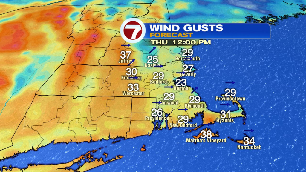 As soon as a chilly entrance clears the coast tomorrow night time, temps drop off after midnight and we’ll dry out. By Thanksgiving morning, temps are again within the 30s with some morning sunshine again. We’ll have the tendency to see extra noon/afternoon clouds within the combine with a gusty breeze as highs run into the mid to higher 40s noon. It’ll be cool and breezy for these Excessive College rivalry soccer video games. Winds gusts 25-35mph.