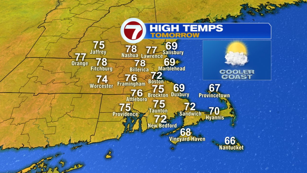 A fantastic thing about a day yesterday mixed sunshine, low humidity and seasonably heat temps as highs topped off within the mid to higher 70s. Whereas right this moment will probably be a bit cooler, 66-70 coast, 70-74 inland, it’ll be a positive September day as extra sunshine and low humidity wins out. That additionally permit for a cool in a single day tonight with many burbs falling off into the 40s.