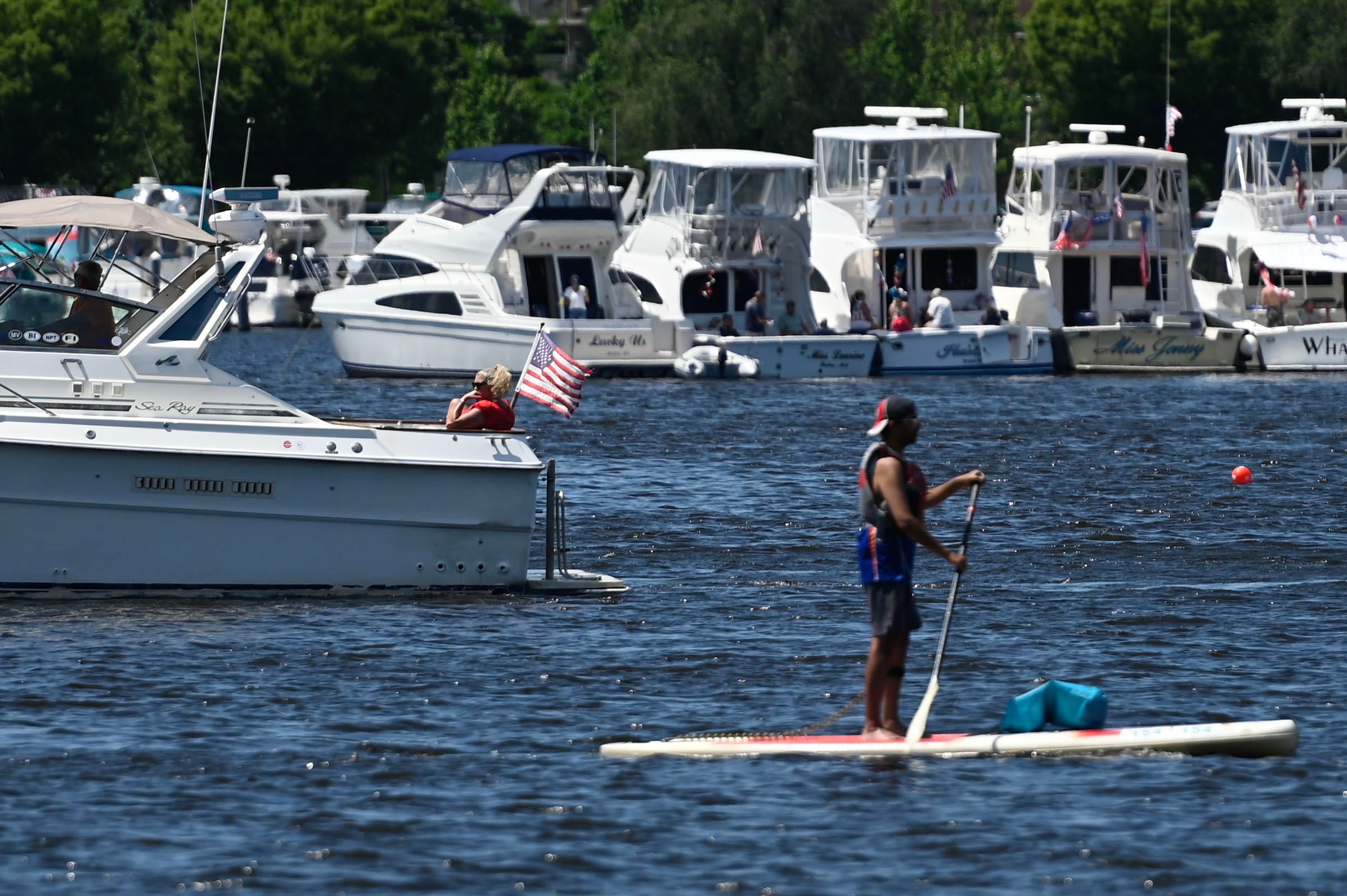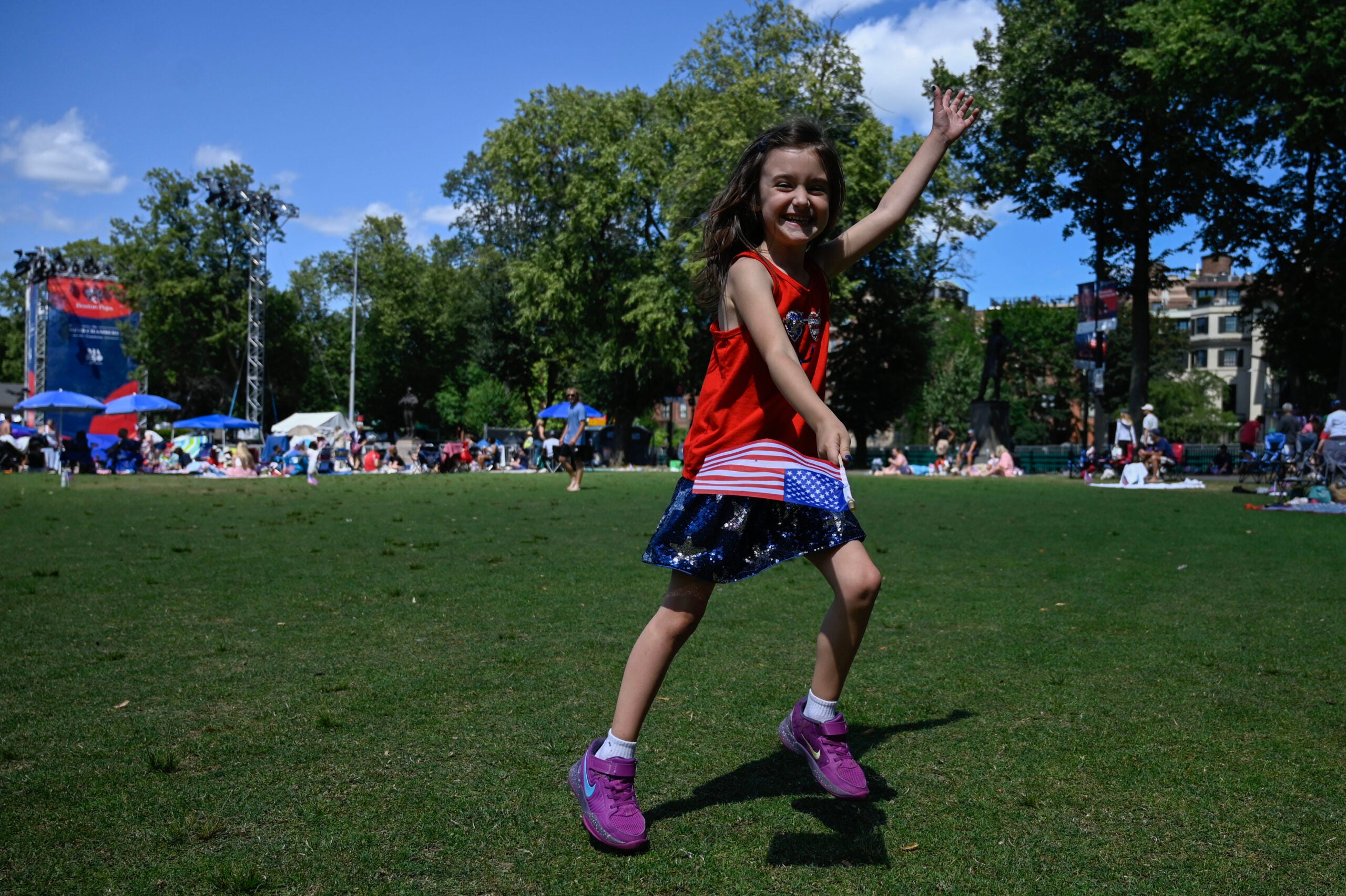 Christina Hogue enjoys the gorgeous climate whereas she runs round with a mini-American flag she obtained on the Boston Pops Firework Spectacular on July Fourth on the Hatch Shell on the Charles River. Hogue, from Michigan, is visiting Boston for the primary time to have fun July Fourth. (Heather Diehl for the Boston Globe)A whole lot collect alongside the Charles River by the Hatch Shell to benefit from the Boston Pops Firework Spectacular on July Fourth. The river can be a well-liked location for individuals to have fun the vacation from boats, kayaks, and paddle boards. (Heather Diehl for the Boston Globe)The gates opened at midday on the Hatch Shell on the Charles River, welcoming in hundreds of attendees to the Boston Pops Fireworks Spectacular on July Fourth. (Heather Diehl for the Boston Globe)The gates opened at midday on the Hatch Shell on the Charles River, welcoming in hundreds of attendees to the Boston Pops Fireworks Spectacular on July Fourth. Attendees rush down the Dr. Paul Dudley White Bike Path to safe a spot by the Hatch Shell for the live performance and fireworks deliberate for later within the night. (Heather Diehl for the Boston Globe)