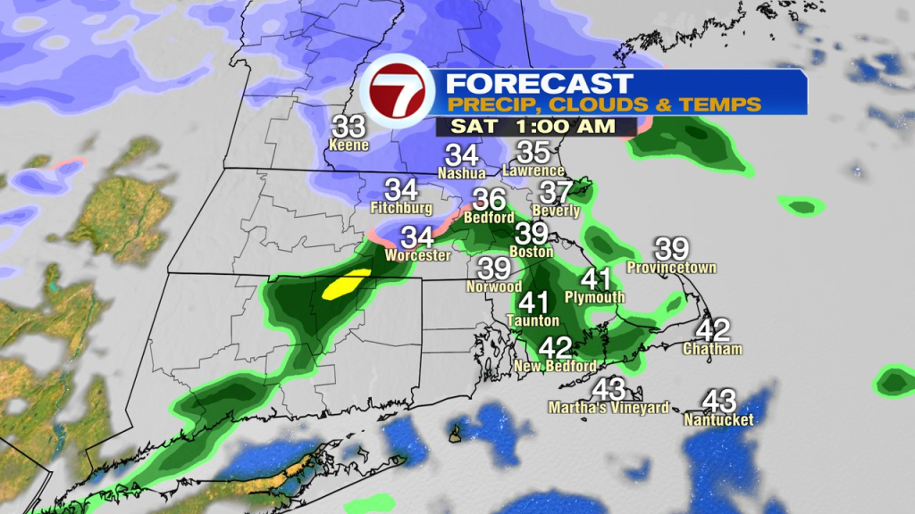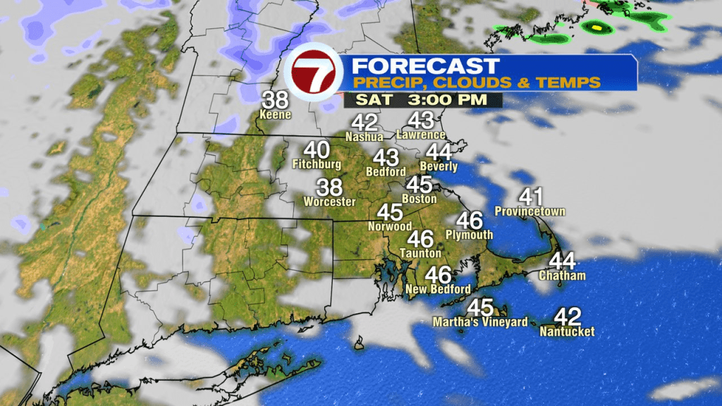 In the present day, we begin off within the 20s and low 30s and rebound into the low to mid 40s this afternoon. Chilly, sure, however general, fairly near the averages for this time of 12 months. Sunshine begins the day, clouds end it, with a couple of late-day snow showers throughout northern MA/NH. A greater likelihood for scattered rain/snow showers transfer by means of a pair hours both facet of midnight tonight. Rain showers close to and south of the Pike, snow showers north. Greatest shot for a coating-1″ is throughout northern Worcester County. This technique will probably supply not less than a couple of inches throughout ski nation.