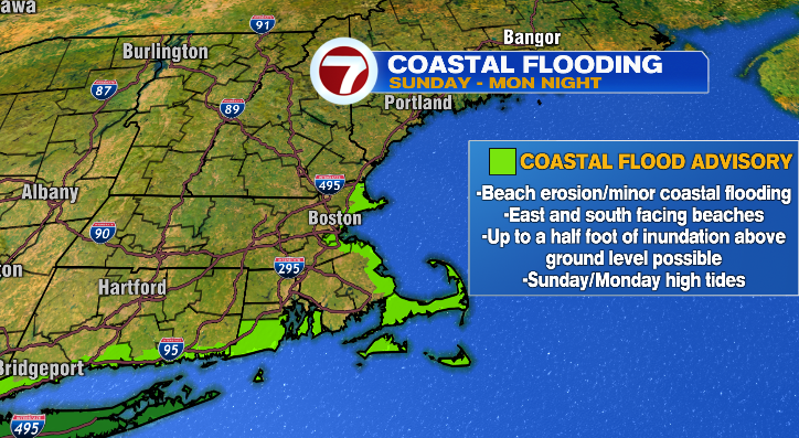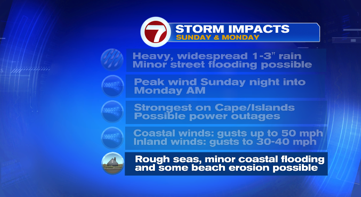 The strongest of the wind gusts will happen Sunday evening into Monday morning. With the wind being a northeasterly, onshore, wind, we predict some minor coastal flooding as nicely.