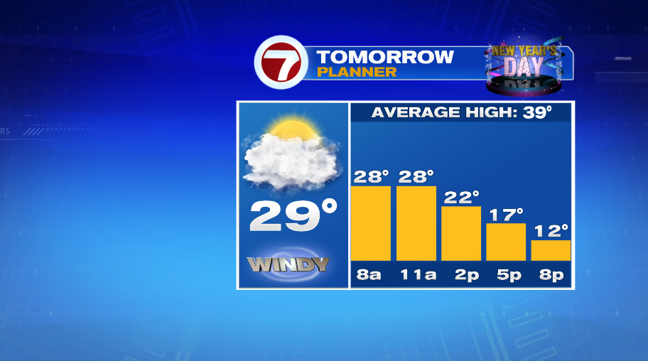 For those who’re out and about tonight celebrating the incoming new yr, all issues thought of, that forecast seems fairly good! It will likely be chilly, sure, however chilly as a result of it’s December… nearly January. However the wind yesterday will proceed its downward cycle, so by midnight, it’s possible beneath 10 mph. Temperatures this night and at midnight will maintain regular within the center 20s with snow showers that begin to get away round midnight.