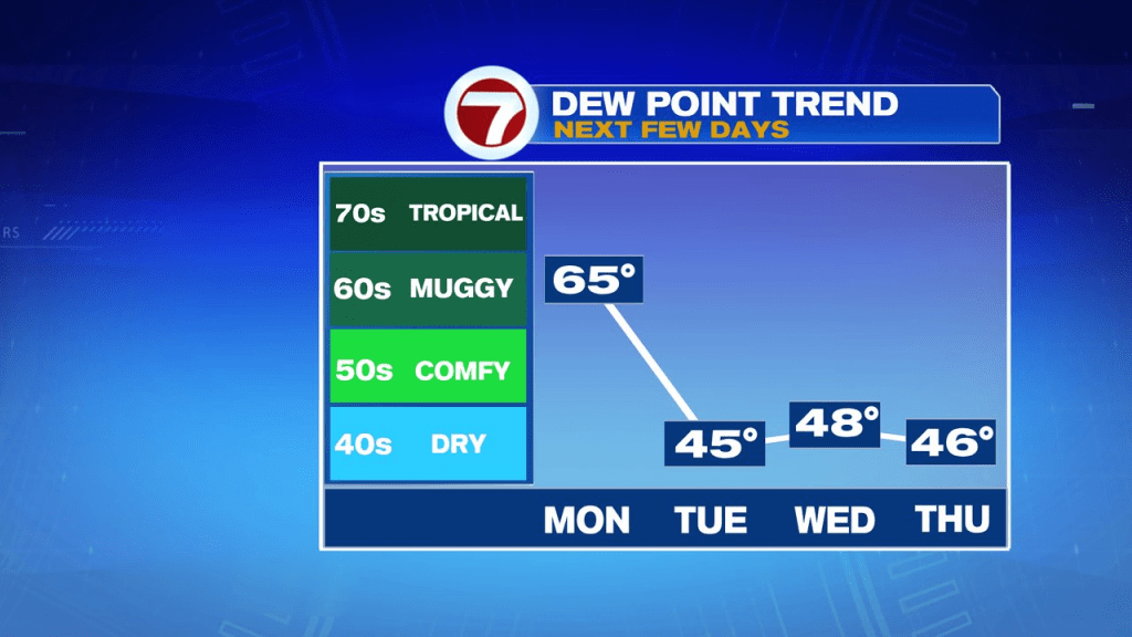 Tonight, humidity drops off behind the entrance and ushers in a snug subsequent a number of days.
