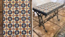 One other piece is a 26-tile desk with an ornate wrought iron base. The desk options tiles made within the late 20s on the seashore in Malibu.