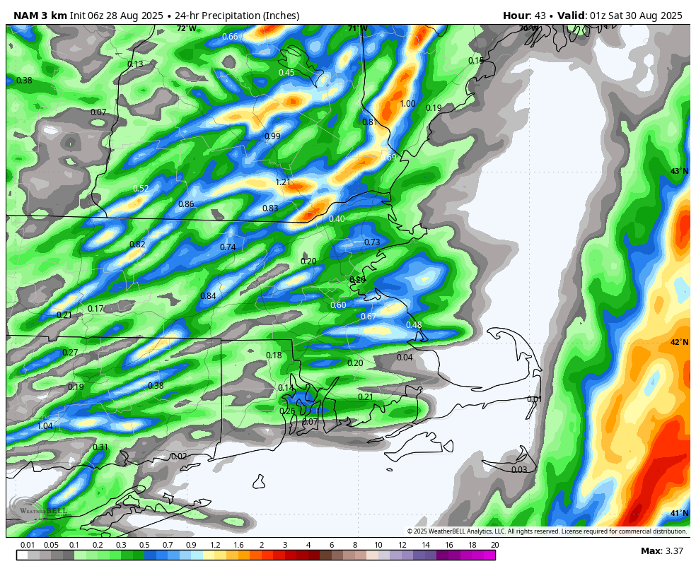 That system is offshore Saturday as we dry out rapidly. A lot of the weekend is dry, and a bit under common for the time of yr, with highs within the low to mid 70s. Scattered showers will nonetheless be attainable throughout the upper terrain of northern New England, so preserve that in thoughts in case your weekend takes you up north.