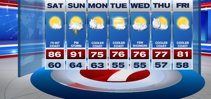 Aside from some late afternoon-early night storms on Sunday the weekend is dry. Nice for any and all types of out of doors actions together with the seashores: