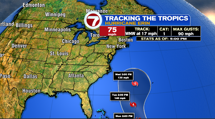 It needs to be famous that in case you are planning any seaside time subsequent week, the surf shall be churned up, particularly on Wed-Thu from a really distant Hurricane Erin passing effectively east of New England: