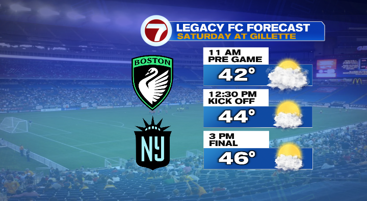 Although the precise air temperatures can be proper on the cash for this time of 12 months, maintain the wind in thoughts and add a layer whenever you’re getting dressed to be out and about– an necessary notice should you’re heading to Gillette for the Boston Legacy’s inaugural recreation towards Gotham FC! When fan fest begins at 10 AM, you may count on temperatures to be within the higher 30s/low 40s. We’ll be within the low to mid 40s for kickoff at 12:30, and within the mid 40s as the sport wraps up round 3.