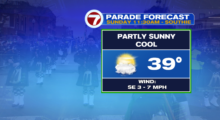 The wind will sustain by the night, lastly dying down in a single day. Lows can be within the mid 20s by the point we get up on Sunday morning. Sunday will begin with sunshine, although clouds will improve all through the day. Anticipate highs between about 38 – 45 levels. General, it’s a cool day, however a quiet one! Bundle up should you’re heading to Southie for the St. Patrick’s Day Parade — temperatures can be within the higher 30s at the beginning of the parade, and within the low 40s by the top! The parade (and every other Sunday afternoon occasions) will keep dry although!